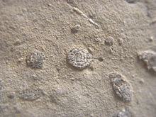 Crinoid columnals (Isocrinus nicoleti) from the Middle Jurassic Carmel Formation at Mount Carmel Junction, Utah; scale in mm