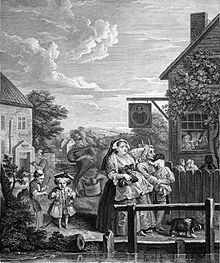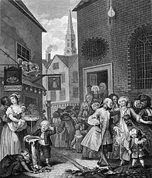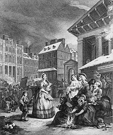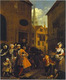 Four Times of the Day is a series of four paintings by English artist William Hogarth. Completed in 1736, they were reproduced as a series of four engravings published in 1738. They are humorous depictions of life in the streets of London, the vagaries of fashion, and the interactions between the rich and poor. Unlike many of Hogarth's other series, such as A Harlot's Progress, A Rake's Progress, Industry and Idleness, and The Four Stages of Cruelty, it does not depict the story of an individual, but instead focuses on the society of the city. Hogarth intended the series to be humorous rather than instructional; the pictures do not offer a judgment on whether the rich or poor are more deserving of the viewer's sympathies: while the upper and middle classes tend to provide the focus for each scene, there are fewer of the moral comparisons seen in some of his other works.