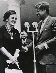 As a result of her blocking American approval of thalidomide, Kelsey was awarded the President's Award for Distinguished Federal Civilian Service by President John F. Kennedy, becoming the second woman to receive that award.