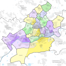 | City subdivisions | 16 area districts (Ortsbezirke) 46 city districts (Stadtteile) |
