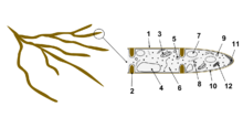 Many species have developed specialized hyphal structures for nutrient uptake from living hosts; examples include haustoria in plant-parasitic species of most fungal phyla, and arbuscules of several mycorrhizal fungi, which penetrate into the host cells to consume nutrients.