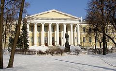 Dostoyevsky's paternal great-grandfather and grandfather were priests in the Ukrainian town of Bratslav. Mikhail was expected to join the clergy too, but instead of entering a seminary he ran away from home and broke with his family permanently. In 1809, when he was twenty years old, Mikhail was admitted to Moscow's Imperial Medical-Surgical Academy. From there he was assigned to a Moscow hospital, where he served as military doctor, and in 1818 he was appointed senior physician. In 1819 he married Maria Isayevna. The following year, he resigned from his post to accept a new job at the Mariinsky Hospital for the poor. After the birth of his first two sons, Mikhail and Fyodor, he was promoted to collegiate assessor, a position which raised his legal status to that of the nobility and enabled him to acquire a small estate in Darovoye, a town 150 versts (about 150 km or 100 miles) from Moscow. Mikhail and Maria subsequently had six more children: Varvara (1822–92), Andrei (1825–97), Lyubov (born and died 1829), Vera (1829–96), Nikolai (1831–83) and Aleksandra (1835–89).