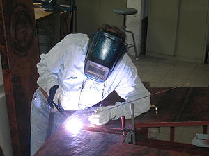 Like other arc welding processes, GTAW can be dangerous if proper precautions are not taken. Welders wear protective clothing, including heavy leather gloves and protective long sleeve jackets, to avoid exposure to extreme heat and flames. Due to the absence of smoke in GTAW, the electric arc can seem brighter than in shielded metal arc welding, making operators especially susceptible to arc eye and skin irritations not unlike sunburn. Helmets with dark face plates are worn to prevent this exposure to ultraviolet light, and in recent years, new helmets often feature a liquid crystal-type face plate that self-darkens upon exposure to high amounts of UV light. Transparent welding curtains, made of a polyvinyl chloride plastic film, are often used to shield nearby workers and bystanders from exposure to the UV light from the electric arc.