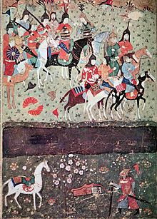 Genghis Khan and Toghrul Khan. Illustration from a 15th century Jami' al-tawarikh manuscript