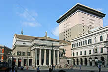 The Teatro Carlo Felice, built in 1828 in the city in the Piazza De Ferrari, and named for the monarch of the then Kingdom of Sardinia (which included the present regions of Sardinia, Piedmont and Liguria). The theatre was the centre of music and social life in the 19th century. On various occasions in the history of the theatre, presentations have been conducted by Mascagni, Richard Strauss, Hindemith and Stravinsky.