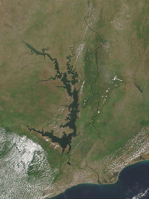 Volta Lake, the largest artificial lake in the world, extends from the Akosombo Dam in southeastern Ghana to the town of Yapei, 520 kilometers (323 mi) to the north. The lake generates electricity, provides inland transportation, and is a potentially valuable resource for irrigation and fish farming.