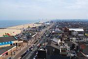 Great Yarmouth's seafront, known as "The Golden Mile" attracts hundreds of thousands of visitors each year to its sandy beaches, Pleasure Beach, indoor attractions and amusement arcades. Great Yarmouth's Marine Parade has 12 Amusement Arcades located within 2 square miles (5.2 km2), including: Atlantis, The Flamingo, Circus Circus, The Golden Nugget, The Mint, Leisureland, The Majestic, The Silver Slipper, The Showboat, Magic City, Quicksilver and The Gold Rush, opened in 2007.