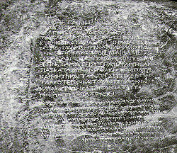 Bilingual edict (Greek and Aramaic) by king Ashoka, from Kandahar. Kabul Museum.