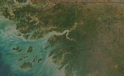 At 36,125 square kilometres (13,948 sq mi), Guinea-Bissau is larger in size than Taiwan, Belgium, or the U.S. state of Maryland. This small, tropical country lies at a low altitude; its highest point is 300 metres (984 ft). The interior is savanna, and the coastline is plain with swamps of Guinean mangroves. Its monsoon-like rainy season alternates with periods of hot, dry harmattan winds blowing from the Sahara. The Bijagos Archipelago extends out to sea.