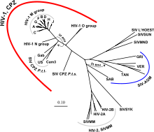 Both HIV-1 and HIV-2 are believed to have originated in non-human primates in West-central Africa and to have transferred to humans (a process known as zoonosis) in the early 20th century. HIV-1 appears to have originated in southern Cameroon through the evolution of SIV(cpz), a simian immunodeficiency virus (SIV) that infects wild chimpanzees (HIV-1 descends from the SIVcpz endemic in the chimpanzee subspecies Pan troglodytes troglodytes). The closest relative of HIV-2 is SIV(smm), a virus of the sooty mangabey (Cercocebus atys atys), an old world monkey living in litoral West Africa (from southern Senegal to western Côte d'Ivoire). New World monkeys such as the owl monkey are resistant to HIV-1 infection, possibly because of a genomic fusion of two viral resistance genes. HIV-1 is thought to have jumped the species barrier on at least three separate occasions, giving rise to the three groups of the virus, M, N, and O.