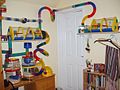 In the case of self-built dwellings, care should be taken to avoid materials that are dangerous to the animals. Plywood and wood from conifers is not suitable, because hamsters gnaw at their houses and both glue and resin are poisonous to them. Using standard water-soluble white wood glue to join pieces of solid wood, such as birch or beech wood, creates a safe environment for the hamster, although it may still chew through the wood. A purchased cage can be equipped with several intermediate levels, connected using stairs.
