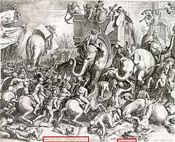 The Roman cavalry won an early victory by swiftly routing the Carthaginian horse, and standard Roman tactics for limiting the effectiveness of the Carthaginian war elephants were successful, including playing trumpets to frighten the elephants into running into the Carthaginian lines. Some historians say that the elephants routed the Carthaginian cavalry and not the Romans, whilst others suggest that it was actually a tactical retreat planned by Hannibal. Whatever the truth, the battle remained closely fought. At one point, it seemed that Hannibal was on the verge of victory, but Scipio was able to rally his men, and his cavalry, having routed the Carthaginian horse, attacked Hannibal's rear. This two-pronged attack caused the Carthaginian formation to collapse.