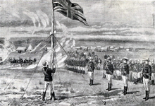 The Pioneer Column hoists the Union Jack on the kopje overlooking the city, 13 September 1890