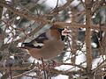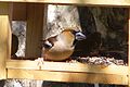 The Hawfinch, Coccothraustes coccothraustes, is a passerine bird in the finch family Fringillidae. As its closest living relatives are the Evening Grosbeak (C. vespertinus) and the Hooded Grosbeak (C. abeillei) from North America, the Hawfinch is sometimmes also konwn as European Grosbeak.
