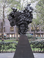 "The Flowering of the English Baroque", bronze memorial sculpture by Glynn Williams in a small park on Victoria St, Westminster.