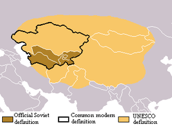 In the 14th century much of Central Asia, and many areas beyond it, were conquered by Timur (1336–1405) who is known in the west as Tamerlane. It was during Timur’s reign that the nomadic steppe culture of Central Asia fused with the settled culture of Iran. One of its consequences was an entirely new visual language that glorified Timur and subsequent Timurid rulers. This visual language was also used to articulate their commitment to Islam. Timur's large empire collapsed soon after his death, however. The region then became divided among a series of smaller Khanates, including the Khanate of Khiva, the Khanate of Bukhara, the Khanate of Kokand, and the Khanate of Kashgar.