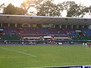 According to statistics in 1994, all of Ho Chi Minh City has 492.7 hectares for sports activities, on average 1.02 m² per person, including the inner city is 0.26 m² per person. With the increasing population, the actual number is now lower. In 2005, the city has 91 football fields, 86 swimming pools, 256 gyms. The largest stadium in the city today is the Thống Nhất stadium, with 25 thousand seats. The second largest one is Quân khu 7, located in the Tan Binh district. Not just for sport, it is also the site of the many music programs scale. An important sporting venues of the city, Phu Tho Racing School. Emerged from the colonial period. Where now is the only racecourse in Vietnam. Department of Physical Education – Sports City also manages a number of clubs as Phan Dinh Phung, Thanh Da, Yet Kieu.