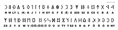 In the earliest times Hungarian language was written in a runic-like script (although it was not used for literature purposes in the modern interpretation). The country switched to the Latin alphabet after being Christianized under the reign of Stephen I of Hungary (1000–1038).