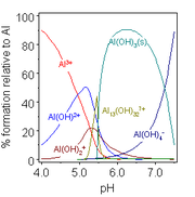 Aluminium hydrolysis as a function of pH. Water molecules attached to Al are omitted