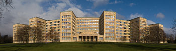 The IG Farben Building or the Poelzig Building, was built from 1928 to 1930 as the corporate headquarters of the IG Farben conglomerate in Frankfurt am Main, Germany. It is also known as the Poelzig Ensemble or Poelzig Complex, and previously as the IG Farben Complex, and the General Creighton W. Abrams Building. A competition to design the building was won by the architect Hans Poelzig.