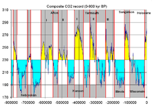 Isotopic analysis of the ice in the core can be linked to temperature and global sea level variations. Analysis of the air contained in bubbles in the ice can reveal the palaeocomposition of the atmosphere, in particular CO2 variations. There are great problems relating the dating of the included bubbles to the dating of the ice, since the bubbles only slowly "close off" after the ice has been deposited. Nonetheless, recent work has tended to show that during deglaciations CO2 increases lag temperature increases by 600 +/- 400 years. Beryllium-10 concentrations are linked to cosmic ray intensity which can be a proxy for solar strength.