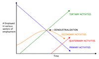 A recent trend has been the migration of prosperous, industrialized nations toward a post-industrial society. This is manifested by an increase in the service sector at the expense of manufacturing, and the development of an information-based economy, the so-called informational revolution. In a post-industrial society, manufacturing is relocated to more economically-favorable locations through a process of offshoring.