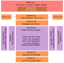 Internet Explorer uses a componentized architecture built on the Component Object Model (COM) technology. It consists of several major components, each of which is contained in a separate Dynamic-link library (DLL) and exposes a set of COM programming interfaces hosted by the Internet Explorer main executable, iexplore.exe: