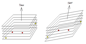 • Relativity of simultaneity: Observers who are in motion with respect to each other may disagree on whether two events occurred at the same time or one occurred before the other.