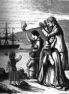 Emigrants Leave Ireland engraving by Henry Doyle depicting the emigration to America following the Great Famine in Ireland.