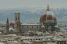 The Santa Maria del Fiore cathedral in Florence, which has the biggest brick dome in the world, and is considered a masterpiece of Italian architecture.