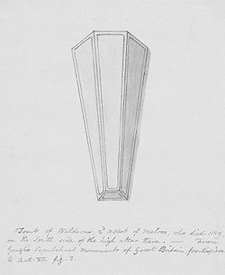 | “ | The tomb of our pious father, sir Waltheof, the second abbot of Melrose, was opened by Enguerrand, of good memory, the bishop of Glasgow, and by four abbots called in for this purpose; and his body was found entire, and his vestments intact, in the twelfth year from his death, on the eleventh day before the Kalends of June [22 May]. And after the holy celebration of mass, the same bishop, and the abbots whose number we have mentioned above, placed over the remains of his most holy body a new stone of polished marble. And there was great gladness; those who were present exclaiming together, and saying that truly this was a man of God ... | ” |