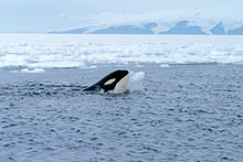 "Wave-hunting" killer whales spy-hop to locate Weddell seals, crabeater seals and leopard seals resting on ice floes, and then swim in groups to create waves that wash over the floe. This washes the seal into the water, where other killer whales lie in wait.