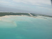 Banaba (or Ocean Island) is a raised-coral island which was once a rich source of phosphates, but it was mostly mined out before independence. The rest of the land in Kiribati consists of the sand and reef rock islets of atolls or coral islands which rise only one or two metres above sea level.