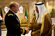 United States Chairman of the Joint Chiefs of Staff, Martin Dempsey, with Kuwaiti Prime Minister Sheikh Jaber Mubarak Al-Sabah in 2011.
