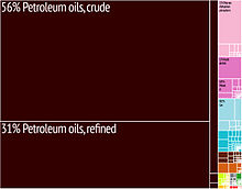 Graphical depiction of Kuwait's product exports in 28 colour-coded categories.