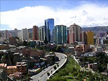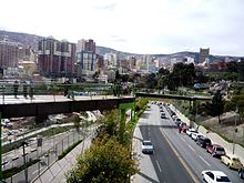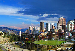 | View of La Paz from Av. del Ejército in 2008. At the back, The Americas Bridge. | |||