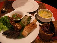 Sticky Rice is a characteristic staple food and has cultural and religious significance to the Lao people. Sticky rice is generally preferred over jasmine rice, and sticky rice cultivation and production is thought to have originated in Laos. There are many traditions and rituals associated with rice production in different environments, and among many ethnic groups. For example, Khammu farmers in Luang Prabang plant the rice variety Khao Kam in small quantities near the hut in memory of dead parents, or at the edge of the rice field to indicate that parents are still alive.