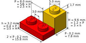 Dimensions of some standard Lego bricks and plates.
