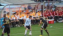 ![]() Messi playing for Barcelona at the 2011 FIFA Club World Cup |