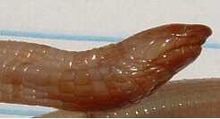 Close-up of the head of the legless fossorial amphisbaenid Rhineura