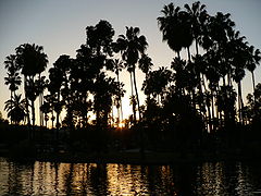 Echo Park as seen with palm trees