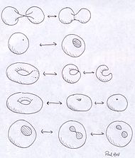 One of the reasons M-Theory is so difficult to formulate is that the numbers of different types of membranes in the various dimensions increases exponentially. For example once you get to 3 dimensional surfaces you have to deal with solid objects with knot shaped holes, and then you need the whole of knot theory just to classify them. Since M-Theory is thought to operate in 11 dimensions this problem then becomes very difficult. But just like string theory, in order for the theory to satisfy causality, the theory must be local, and so the topology changing must occur at a single point. The basic orientable 2-brane interactions are easy to show. Orientable 2-branes are tori with multiple holes cut out of them.