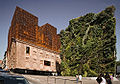While Madrid possesses a modern infrastructure, it has preserved the look and feel of many of its historic neighbourhoods and streets. Its landmarks include the Royal Palace of Madrid; the Teatro Real (Royal theatre) with its restored 1850 Opera House; the Buen Retiro Park, founded in 1631; the 19th-century National Library building (founded in 1712) containing some of Spain's historical archives; a large number of National museums, and the Golden Triangle of Art, located along the Paseo del Prado and comprising three art museums: Prado Museum, the Museo Nacional Centro de Arte Reina Sofía, a museum of modern art, and the Thyssen-Bornemisza Museum, which completes the shortcomings of the other two museums. Cibeles Palace and Fountain have become the monument symbol of the city.