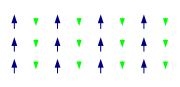 In some materials, neighboring electrons want to point in opposite directions, but there is no geometrical arrangement in which each pair of neighbors is anti-aligned. This is called a spin glass, and is an example of geometrical frustration.