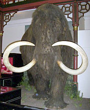 A mammoth is any species of the extinct genus Mammuthus. These proboscideans are members of the elephant family and close relatives of modern elephants. They were often equipped with long curved tusks and, in northern species, a covering of long hair. They lived from the Pliocene epoch from 4.8 million years ago to around 4,500 years ago. The word mammoth comes from the Russian мамонт mamont, probably in turn from the Vogul (Mansi) language.