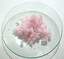 Manganese(II) chloride crystals – the pale pink colour of Mn (II) salts is due to a spin-forbidden 3d transition, which is rare.