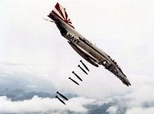 | A U.S. Marine F-4B Phantom II of fighter-attack squadron VMFA-314, the Black Knights, flying over South Vietnam in September 1968. | |