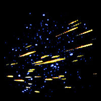 Photo of a part of the sky during a meteor shower over an extended exposure time. The meteors may have actually occurred several seconds to several minutes apart.