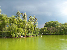 Polanco and Paseo de la Reforma seen from Lake Chapultepec.
