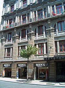 Multistory Sanborns department store with the façade of a 19th century home being used as an entrance aerea